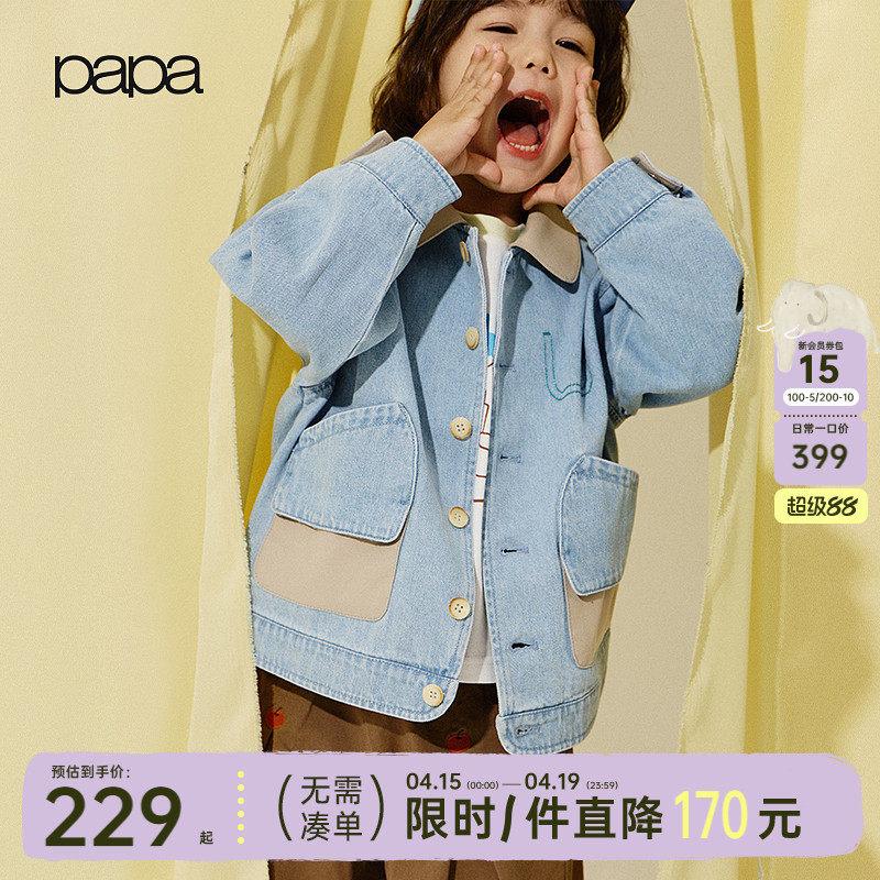 【软牛仔】papa爬爬春季儿童牛仔外套男童2026新品休闲夹克上衣