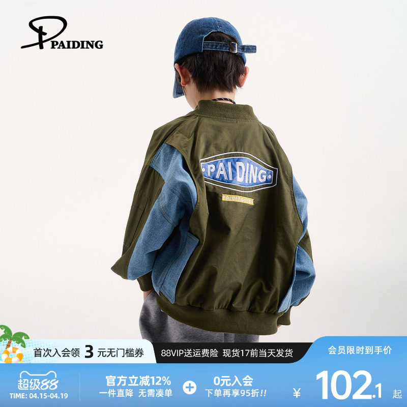 派町童装男童外套2026新款春秋儿童拼接牛仔外套男孩休闲春季宽松