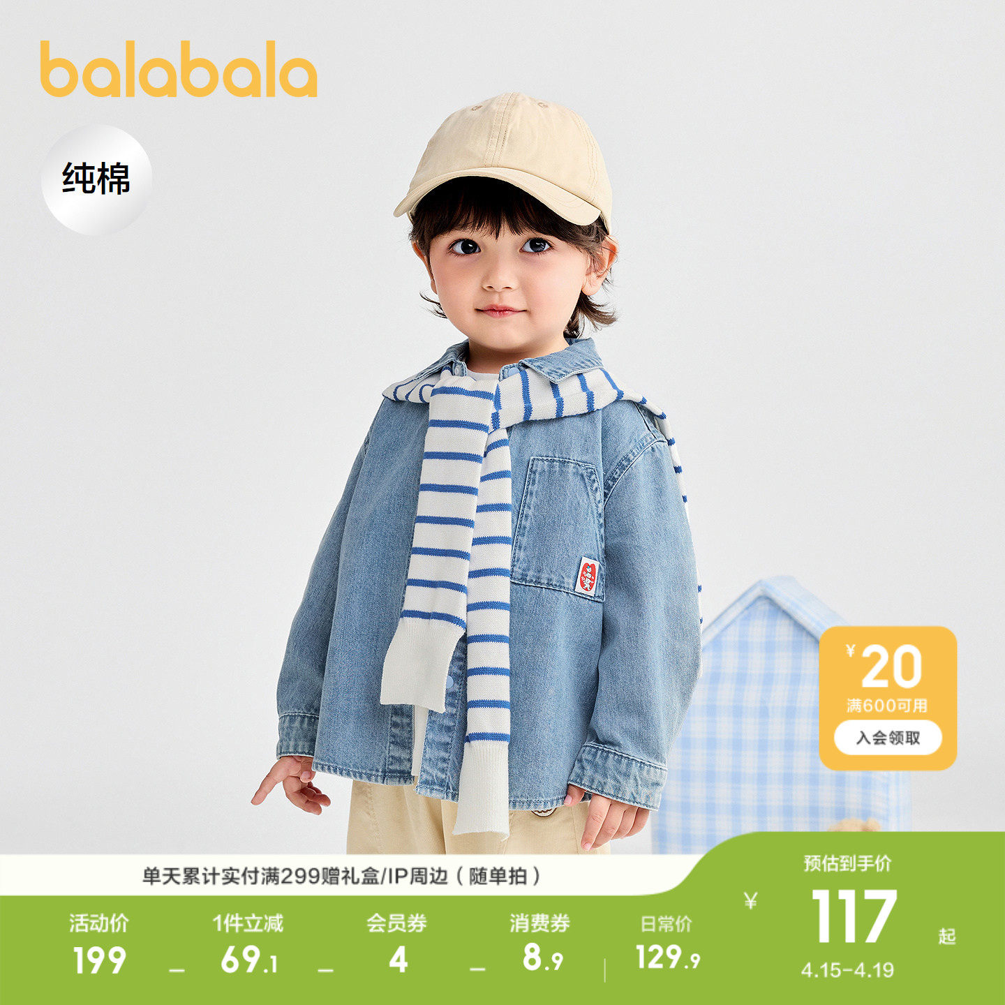 巴拉巴拉男童牛仔衣宝宝纯棉外套儿童宽松上衣2026春装新款童装小