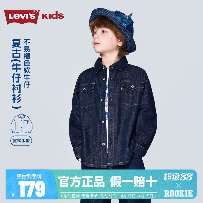 李维斯童装男童牛仔衬衫2026新款外套春秋季长袖上衣儿童纯棉衬衣