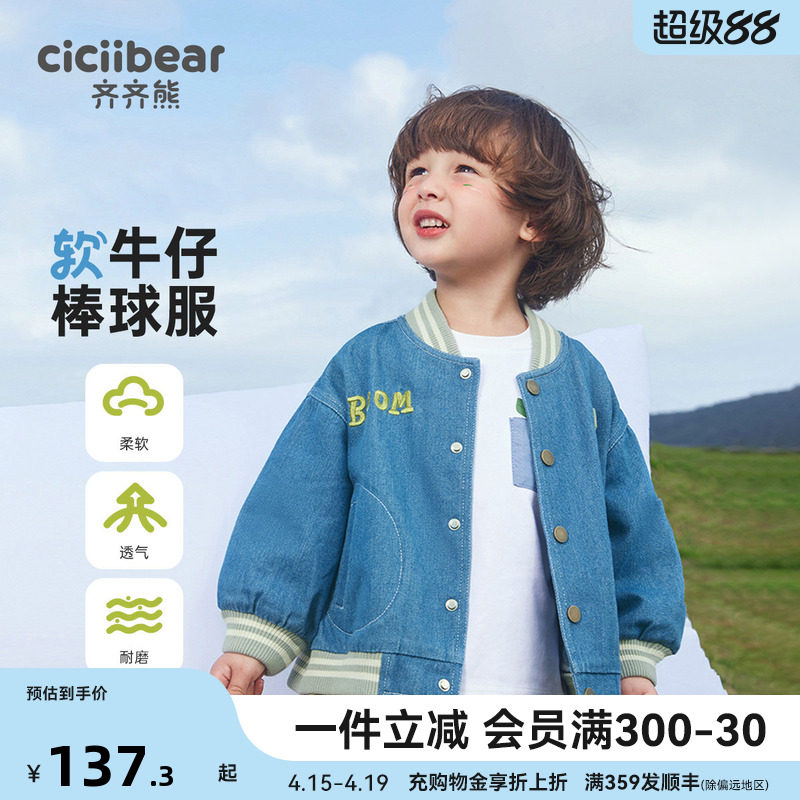 【秀场同款】齐齐熊宝宝软牛仔外套男童春款防褪色2026新款儿童