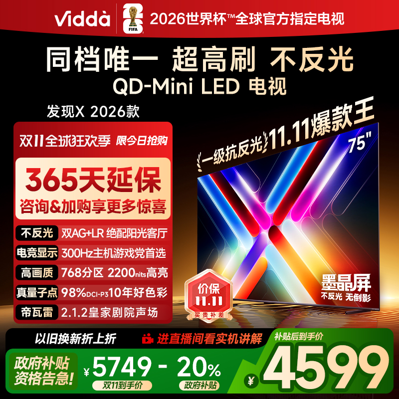 Vidda发现X 2026款 75英寸电视 墨晶屏QD-Mini LED电视机以旧换新