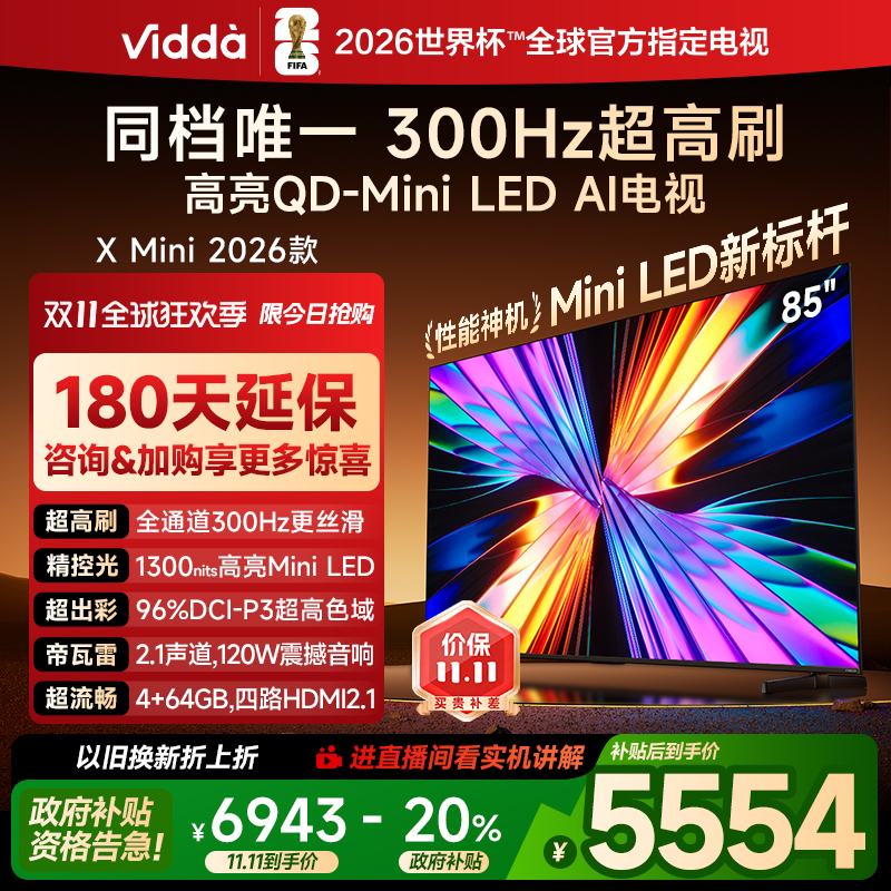 Vidda X Mini 2026款85英寸海信电视 QD-Mini LED 电视机以旧换新