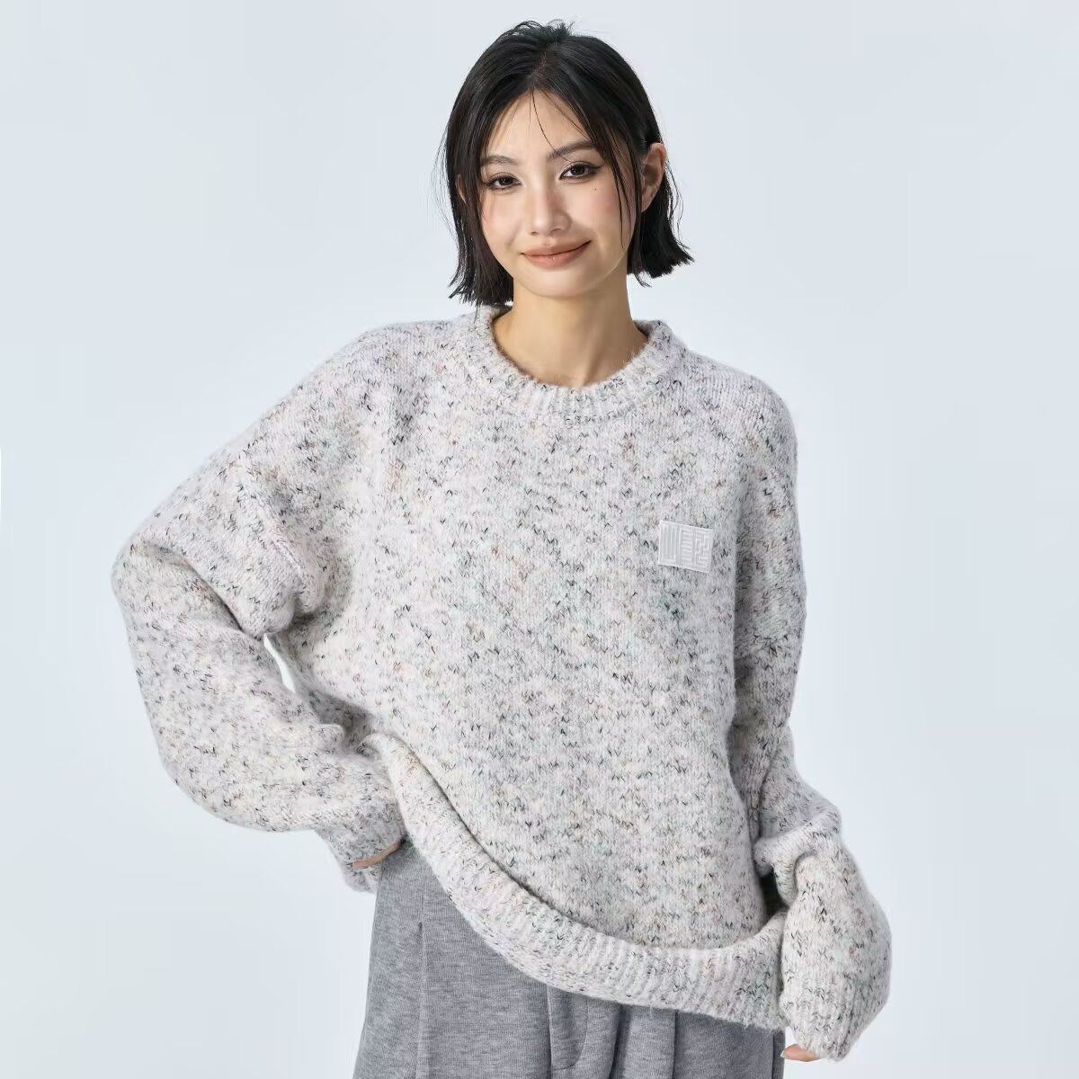 海马毛女2024秋冬新款慵懒高级感宽松外穿圆领套头毛衣针织衫