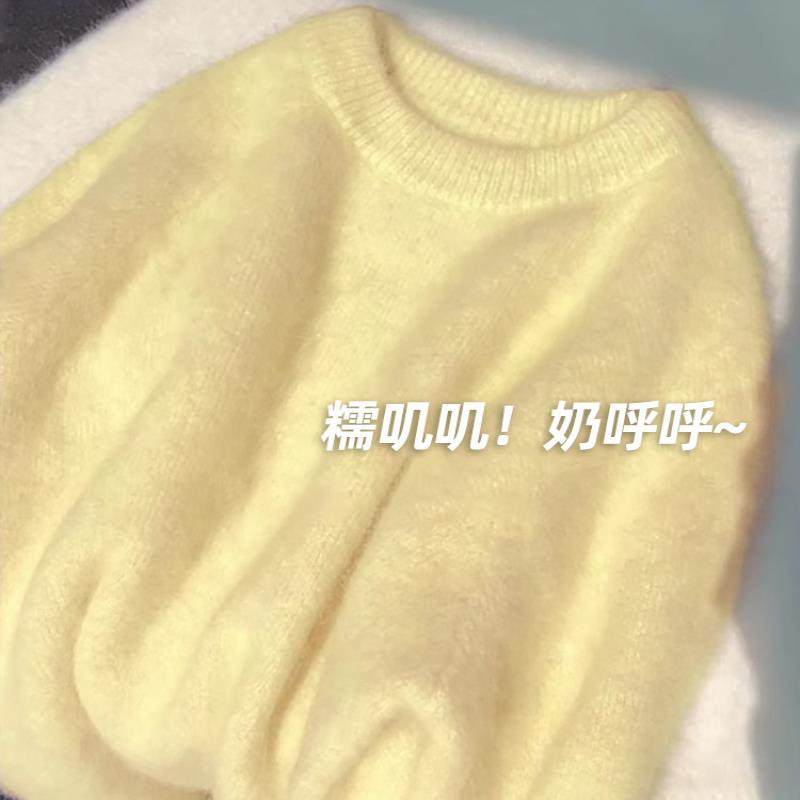 奶黄色软糯套头毛衣女秋冬韩系温柔宽松慵懒海马毛内搭针织上衣厚