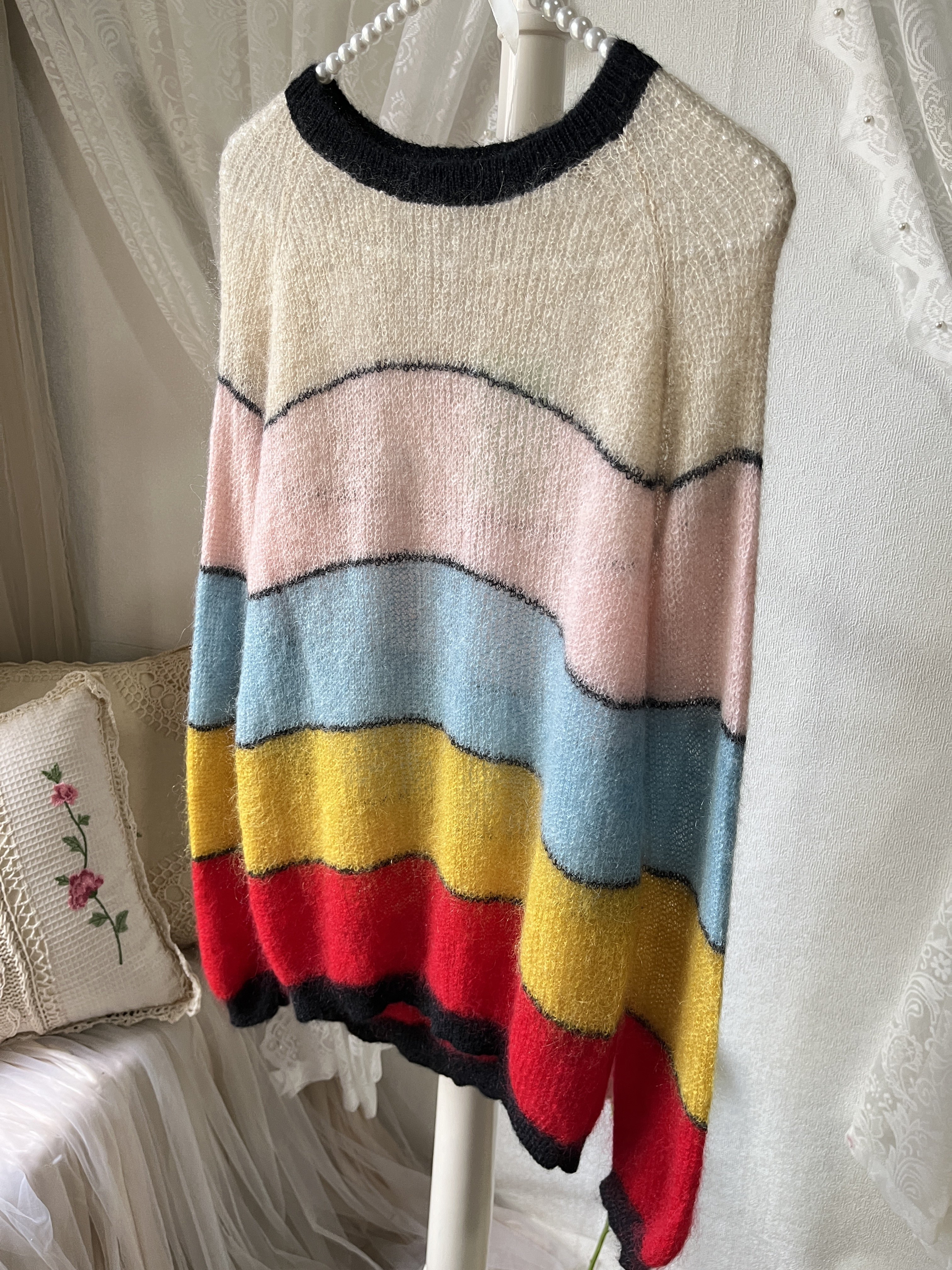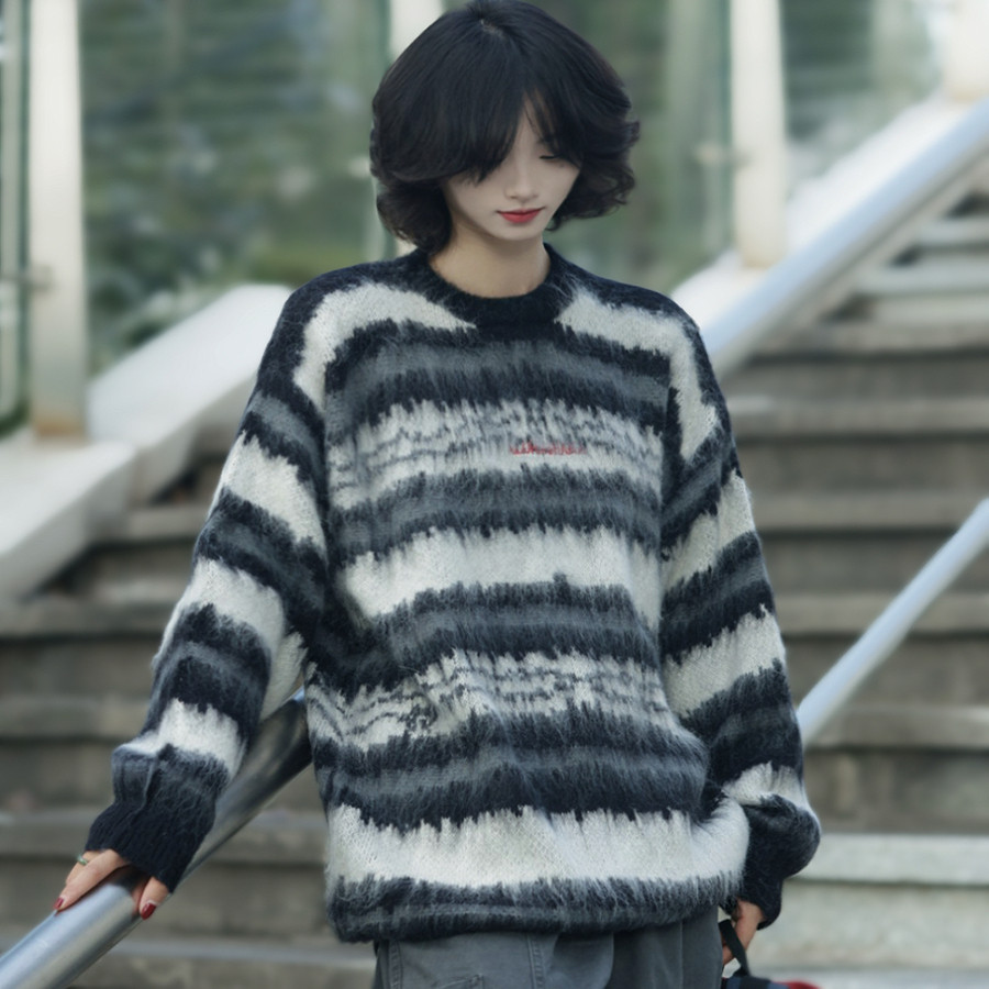 Brandy bm美式百搭海马毛条纹毛衣宽松套头针织衫上衣女