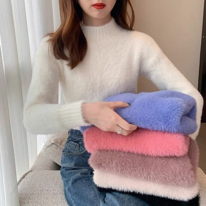 海马毛软糯加厚毛衣女2025冬季新款高领套头水貂绒宽松针织上衣