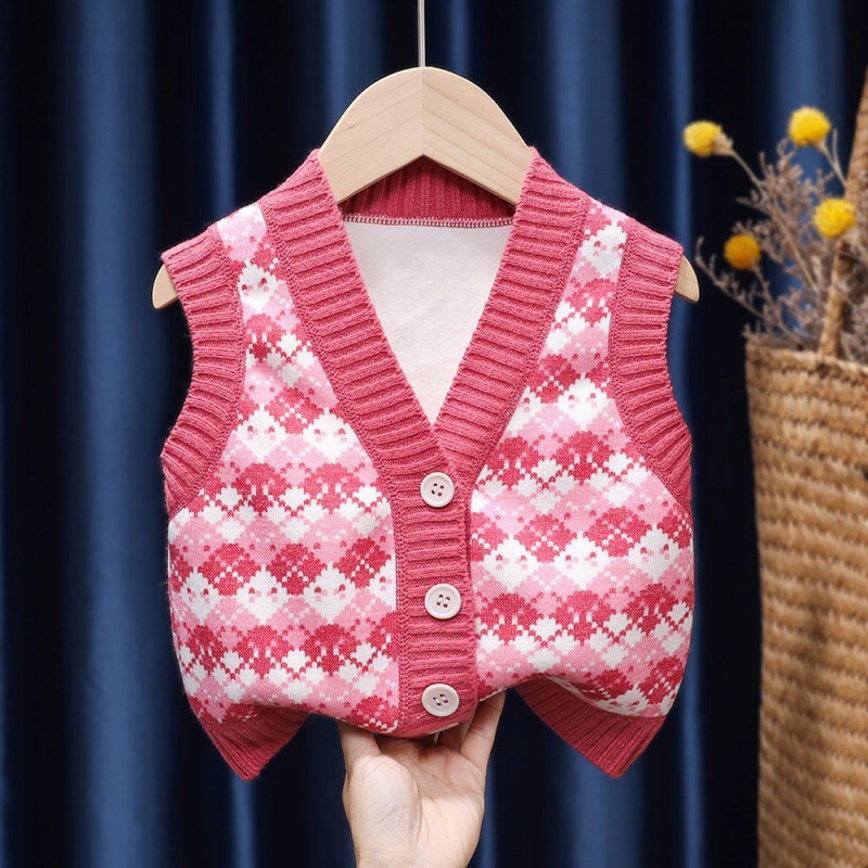 女童针织马甲春秋季新款儿童洋气开衫毛衣中小童宝宝无袖外穿背心