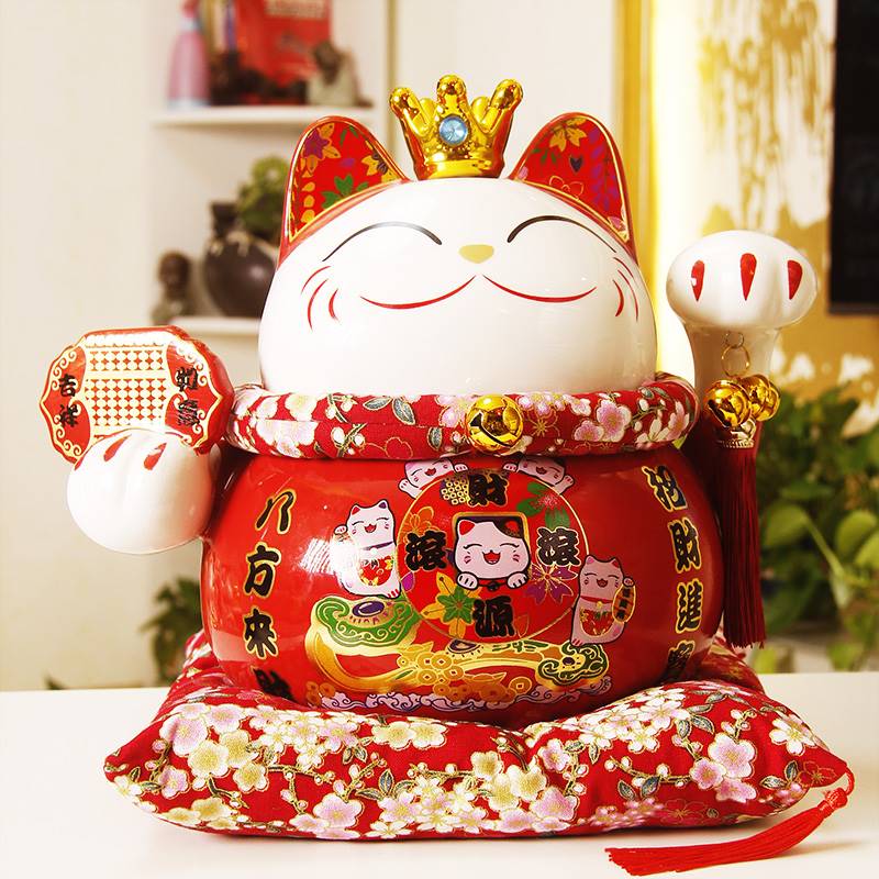 热销板谷摆件11寸摇手财源滚滚陶瓷招财猫储蓄罐山店铺开业创意摆