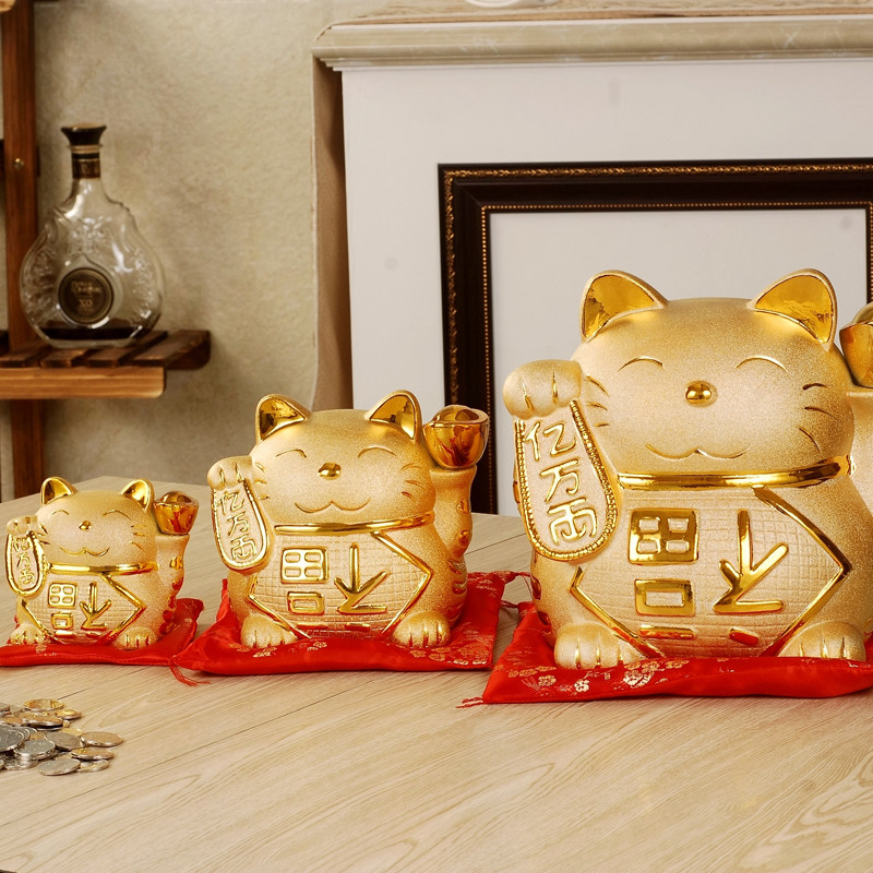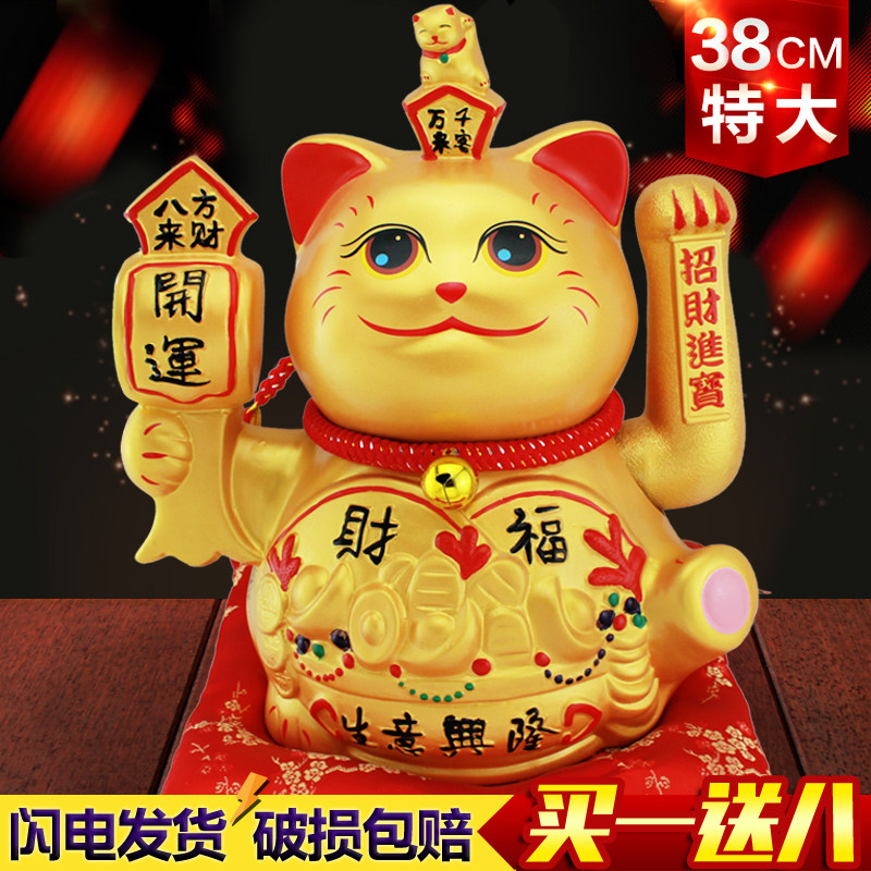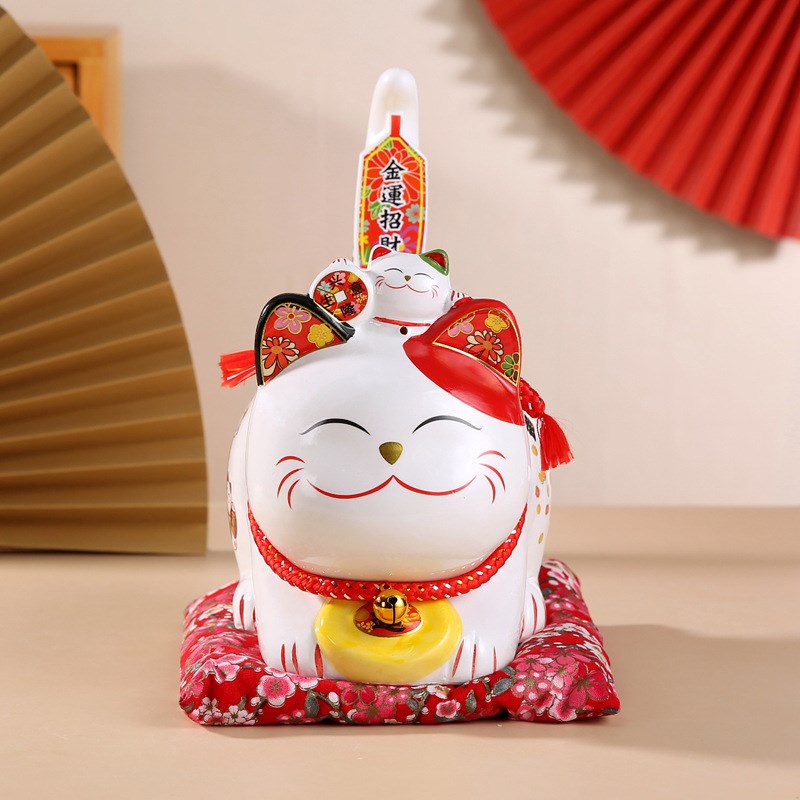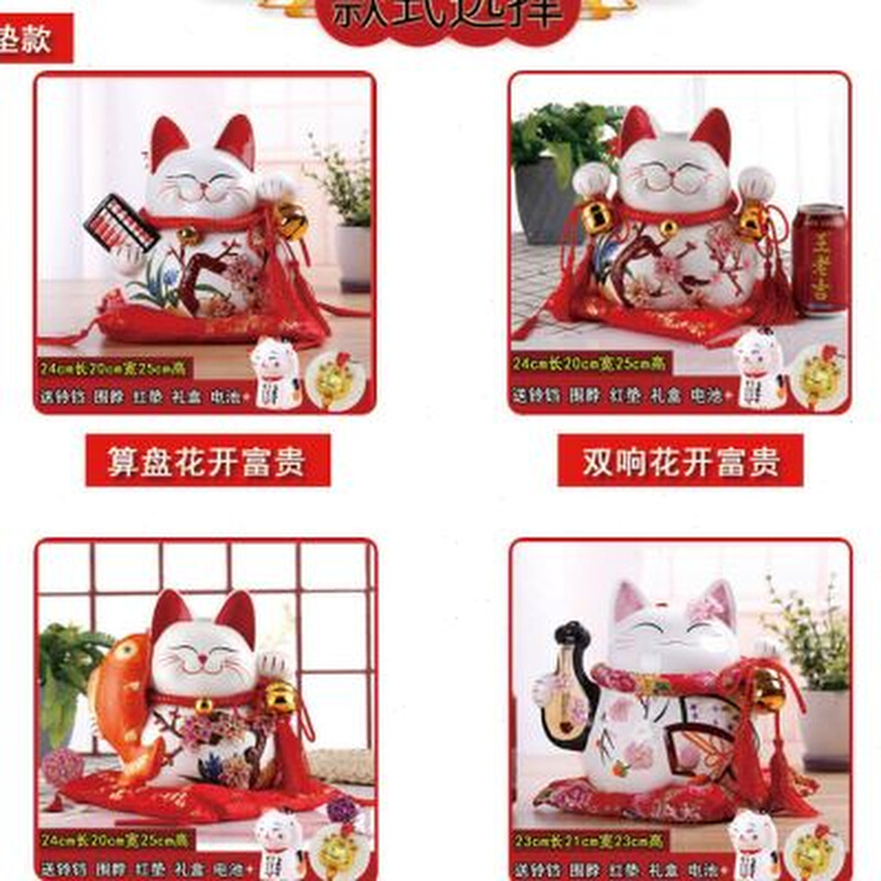 大号自动摇手招财猫储蓄罐摆件门店陶瓷发财猫装饰家居厅开业礼品
