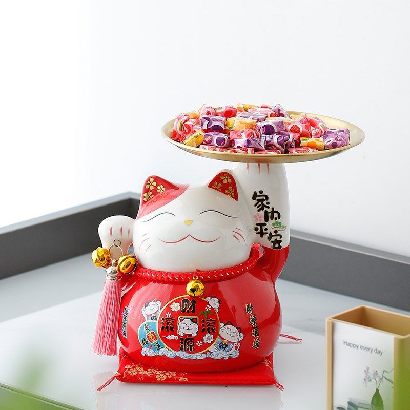 陶瓷招财猫储蓄罐入户鞋柜钥匙收纳玄关家居装饰摆件乔迁新居礼品
