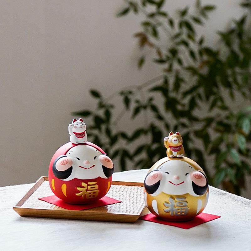 日本达摩摆件红色福旺开运大吉达摩招财猫储蓄罐店铺开业创意礼物