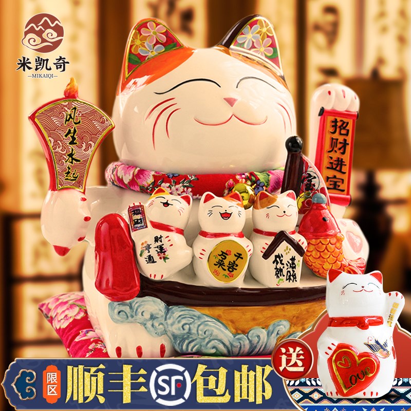 正品钱招猫摆件大财号陶瓷日本招财猫储蓄罐 存创罐 开业意礼品