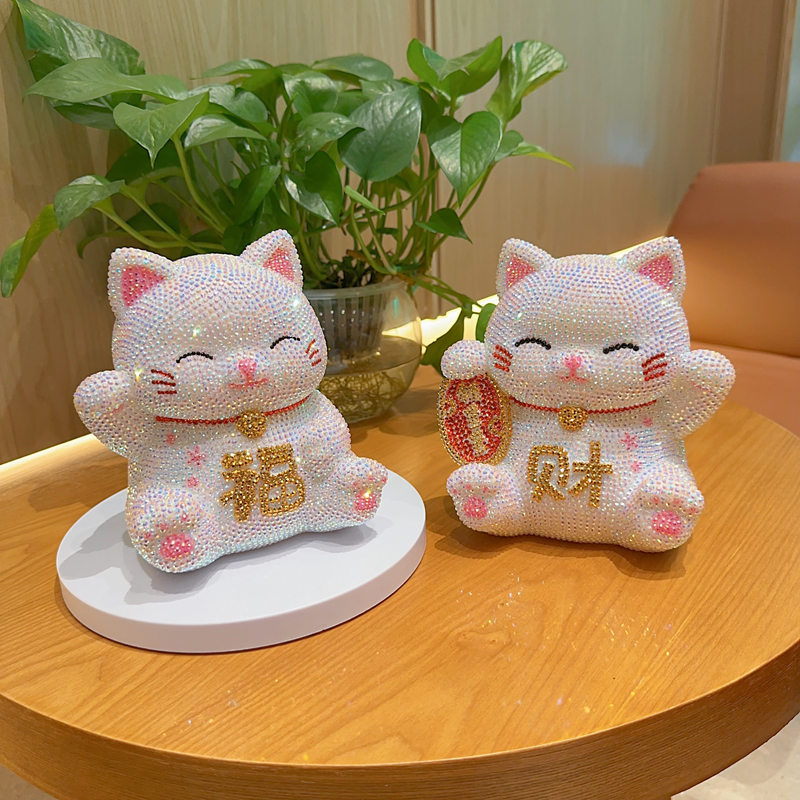 diy贴钻招财猫储蓄罐家居摆件开业收银台发财猫创意粘钻石存钱罐