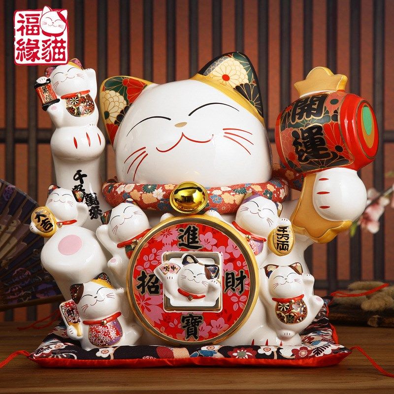 乐喵福缘猫16寸大号招财进宝陶瓷招财猫储蓄罐店铺开业家居摆件