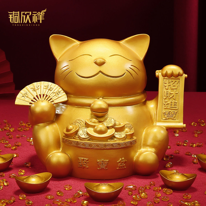铜欣祥 彩铜招财猫储蓄罐摆件家居玄关客厅储钱罐开业礼品装饰品