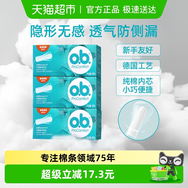 强生德国进口ob卫生棉条16支日夜组合姨妈巾防水透气吸水型棉条棒