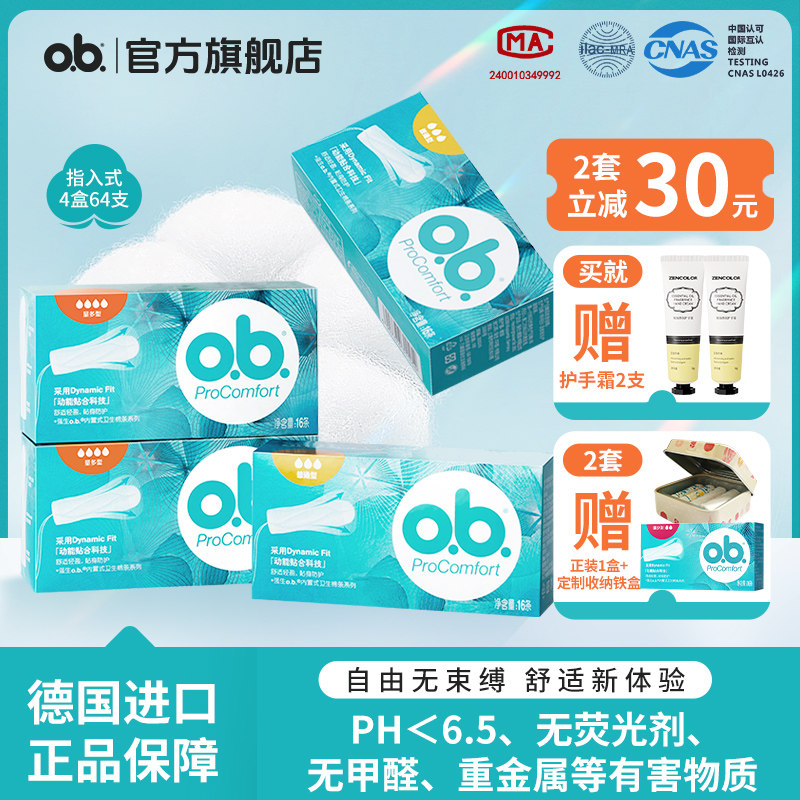 德国进口ob卫生棉条32支替代导管式量多型姨妈巾游泳无香替代导管