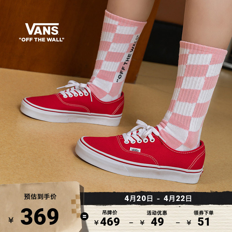 Vans范斯官方 经典款Authentic正红色经典个性帆布鞋低帮
