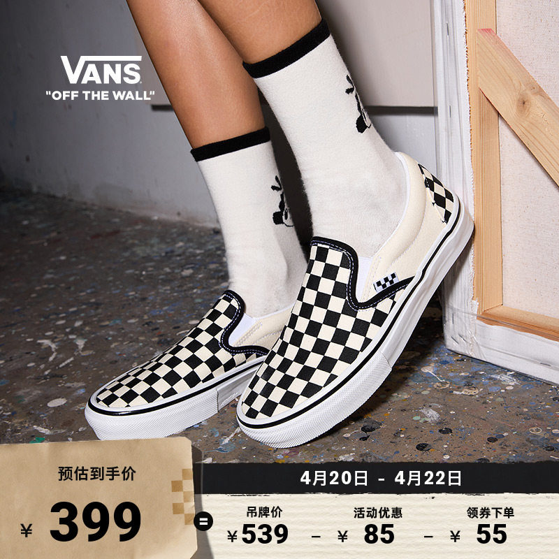 Vans范斯官方 Slip-On黑白棋盘格一脚蹬职业滑板鞋滑板初学者低帮