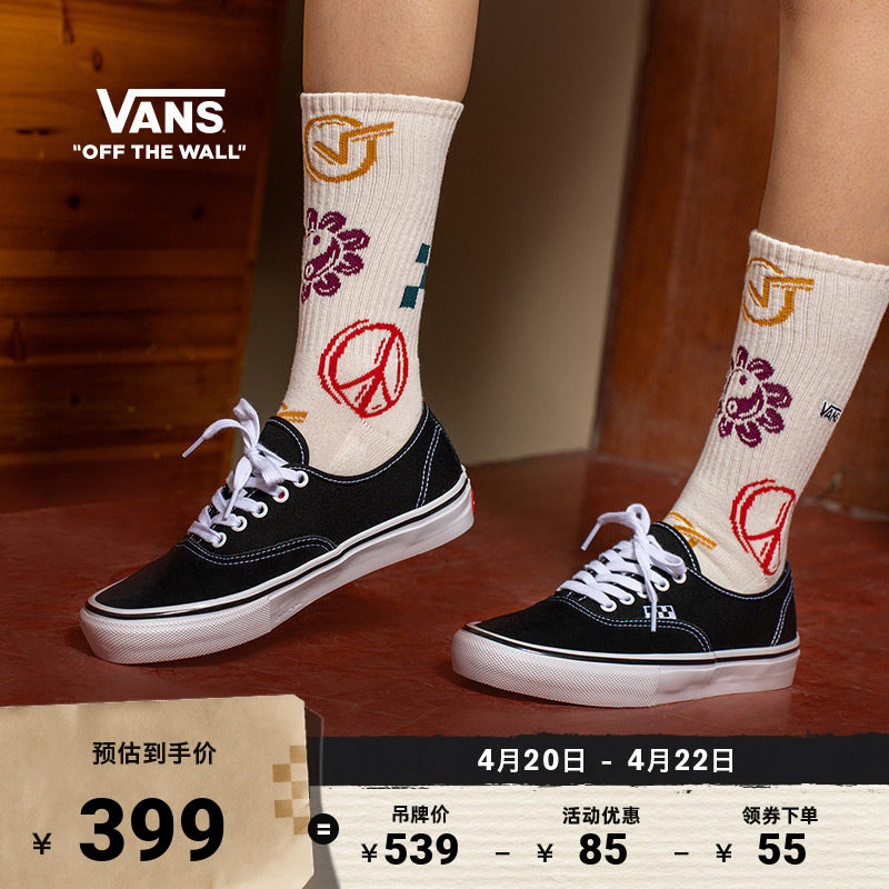 Vans范斯官方 Authentic美式黑色经典职业滑板鞋滑板初学者低帮