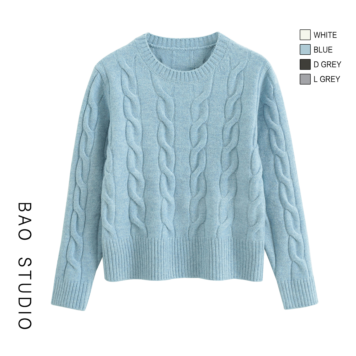 BAO STUDIO韩系冬日氛围感麻花针织毛衣秋冬季宽松慵懒圆领毛衣女