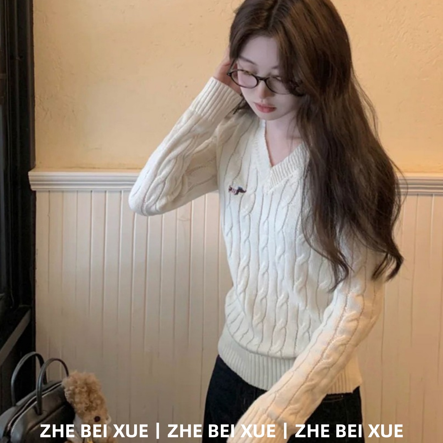 法式V领麻花针织毛衣女秋冬季新款设计感小众宽松内搭打底衫上衣