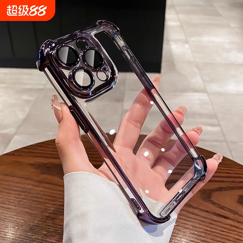 四角气囊防摔适用苹果17promax新款手机壳iphone16Pro透明电镀15PM全包镜头14男女13高级感12防摔11潮牌网红