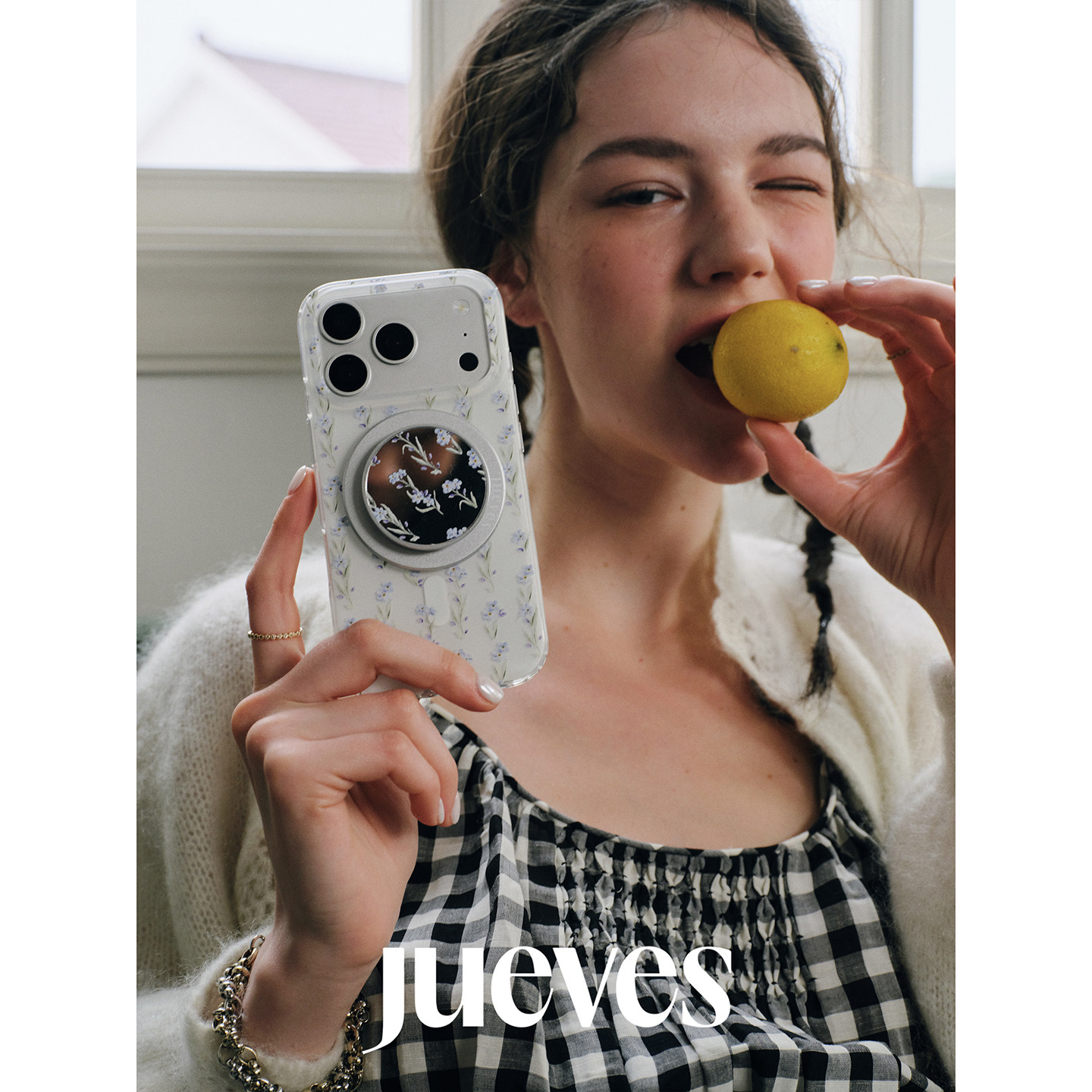 JUEVES星期四春日“蓝色碎花”适用iPhone17ProMax/17Pro/16ProMax/华为Pura70手机壳带支架