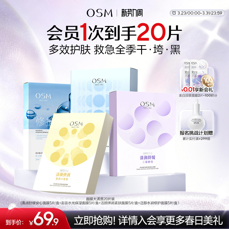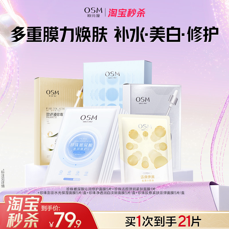 【任选3件】欧诗漫面膜组补水保湿滋润舒缓晒后修护提亮肤色紧致