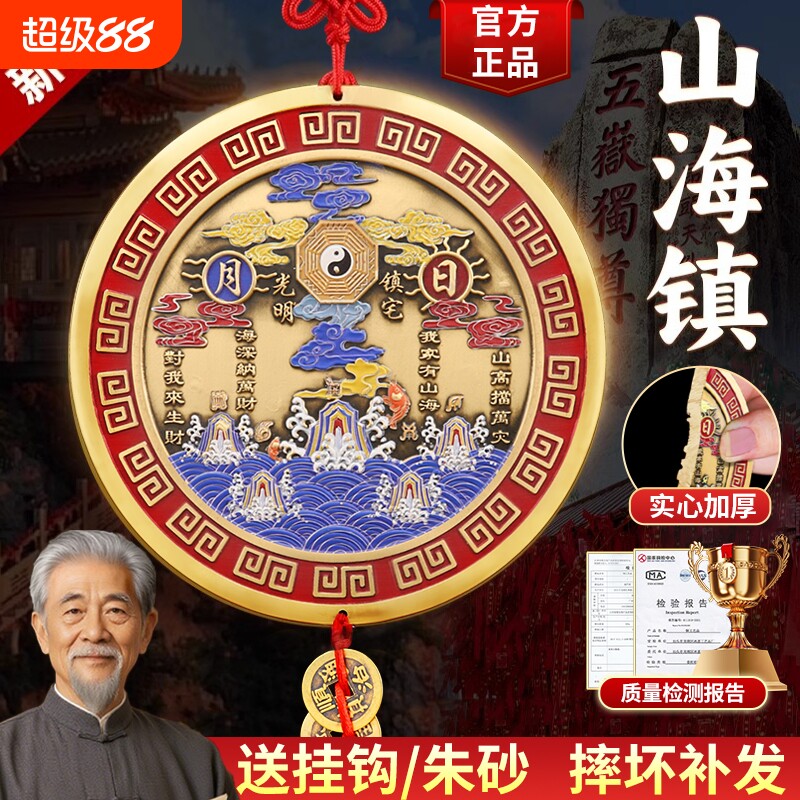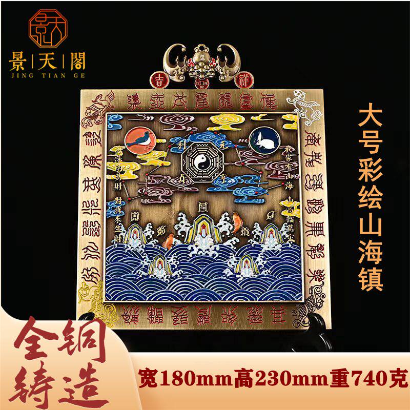 山海镇纯黄铜八卦镜客厅摆件室外大门窗户室内挂件山水镇山海镇图