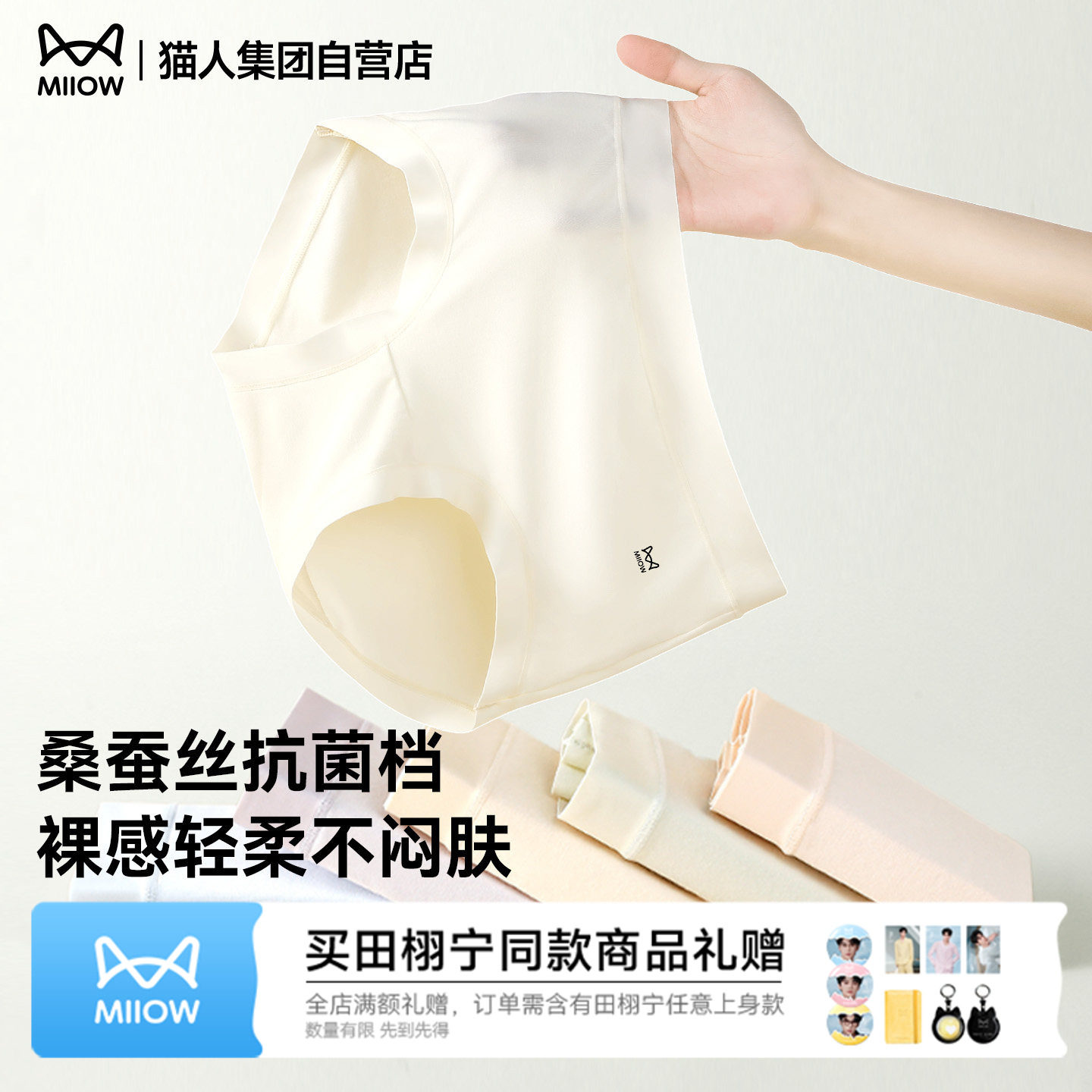 【云朵棉亲肤】猫人内裤女桑蚕丝抗菌底裆无痕透气中腰三角裤夏季