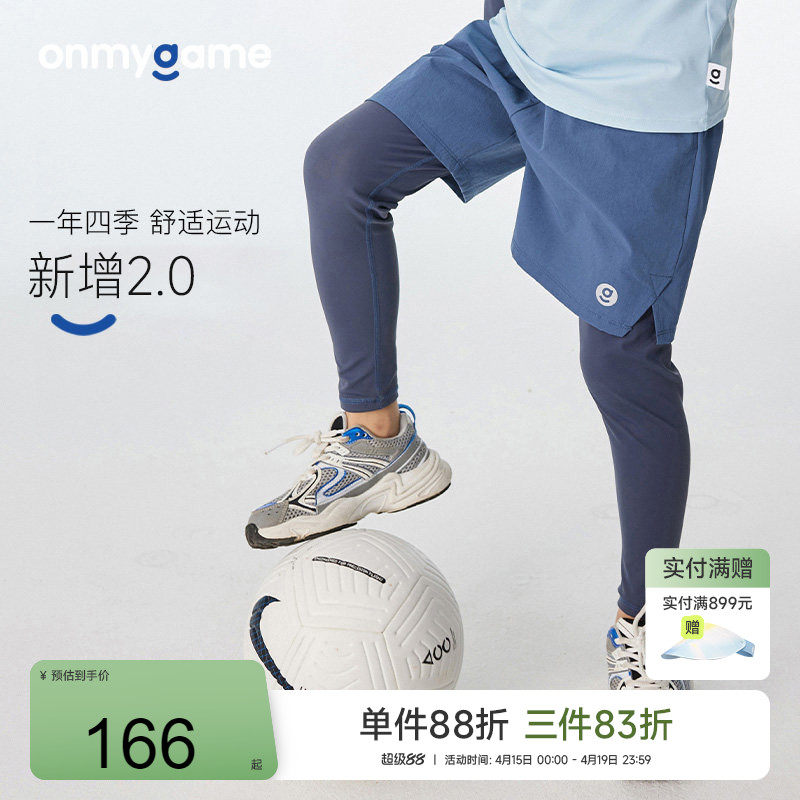 onmygame男童裤子儿童运动裤户外训练假两件长裤透气运动裤春夏款