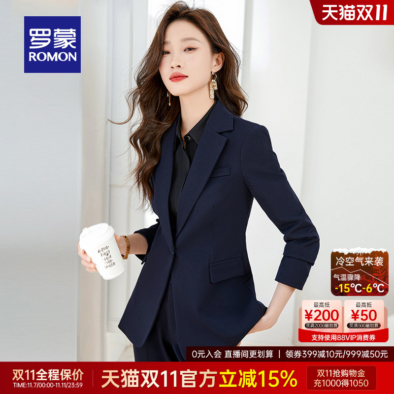 罗蒙女士西服套装时尚气质外套2025秋季新款纯色商务休闲职业西装