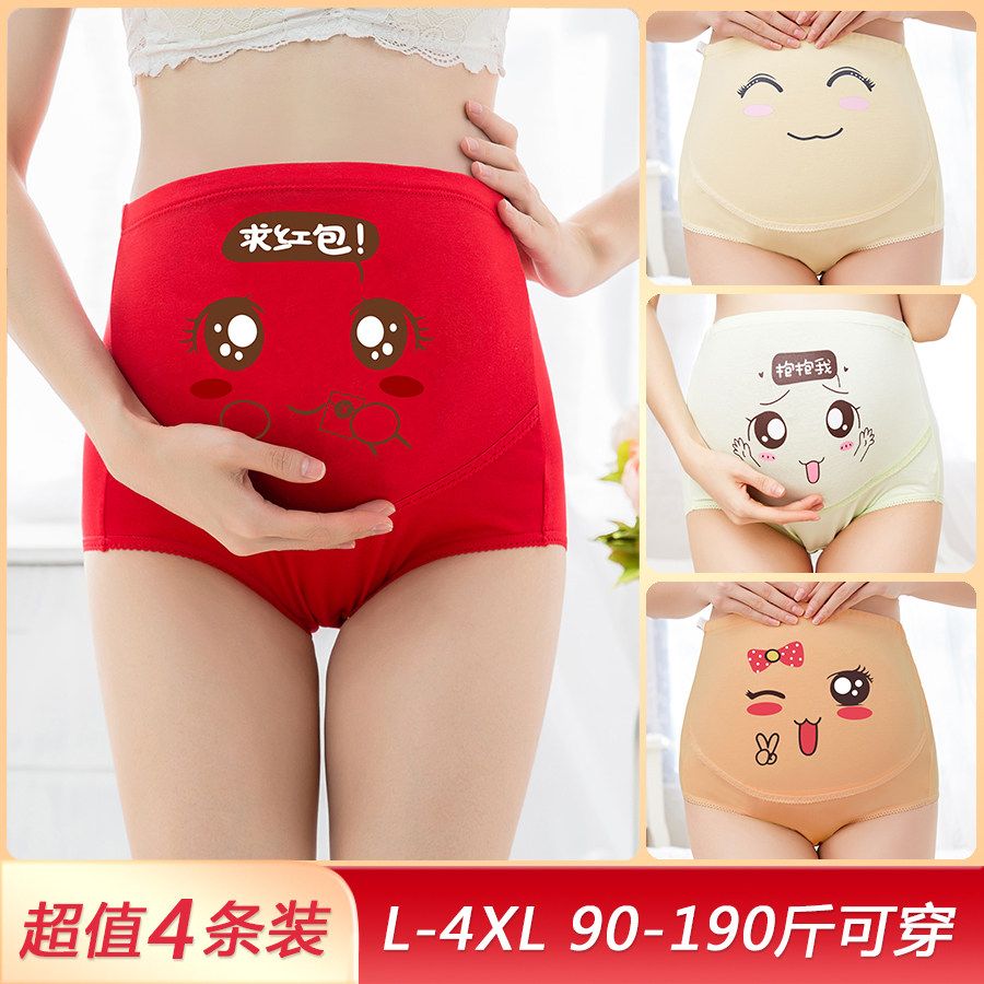 大码孕妇内裤纯棉200斤高腰可调节怀孕期加大马年孕中晚期大红色