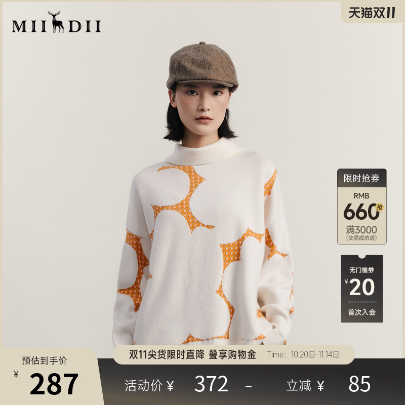 谜底高领套头毛衣女冬新品复古宽松中长款针织衫女234MZ1867