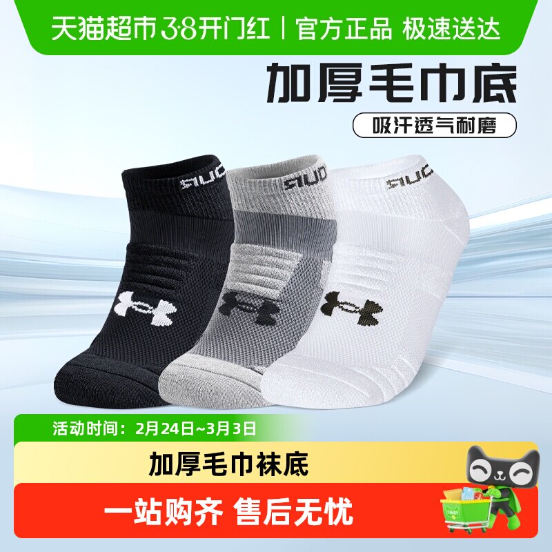 UA安德玛运动袜船袜男士短袜吸汗透气女踝下加厚棉毛巾底跑步篮球