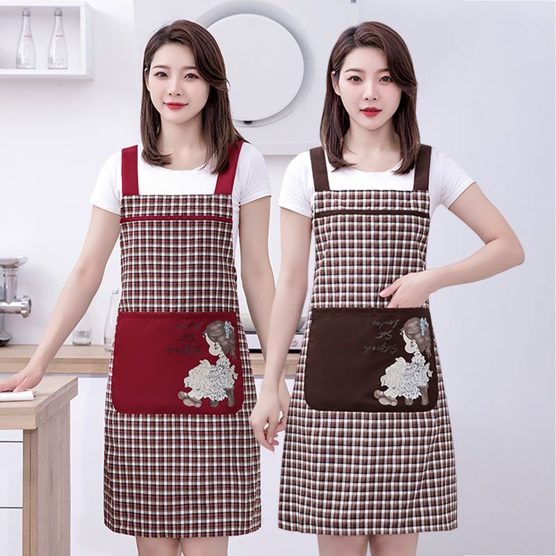 韩版女士时尚细纱棉布围裙家用厨房做饭新款洋气格子透气背带围腰