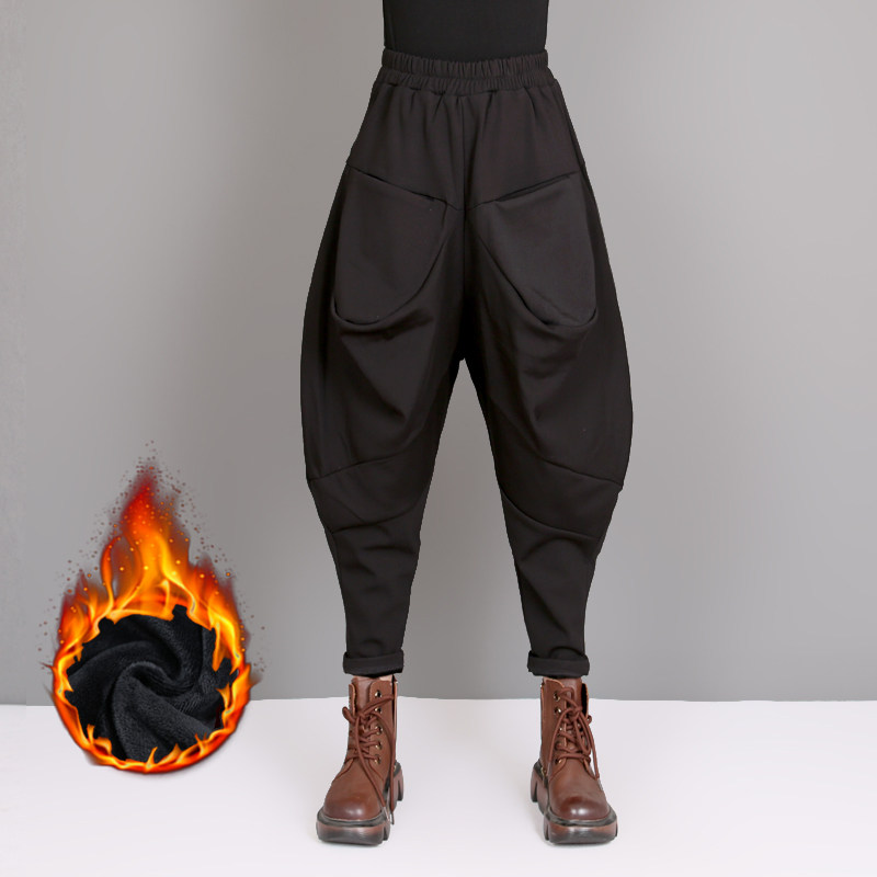 冬女加绒加厚保暖裤2025韩版个性大口袋哈伦裤保暖裤宽松加厚灯笼