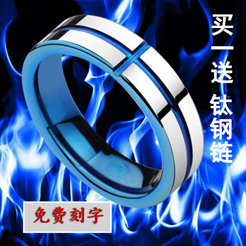戒指男女钛钢日韩版学生食指戒蓝色潮人单身男士尾戒时尚个性指环