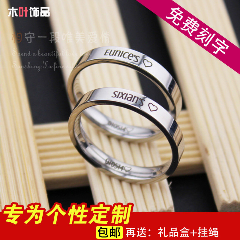 DIY情侣戒指刻字一对定制 女生日韩版创意潮男尾戒食指环钛钢饰品