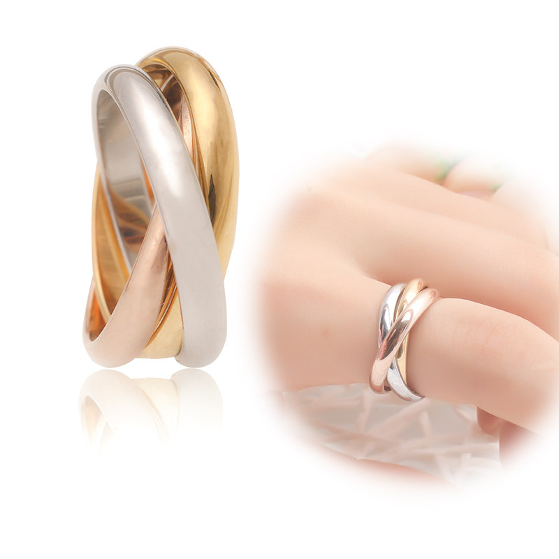 日韩版时尚潮流18K玫瑰金女三色三环戒指缘定三生指环生日礼物