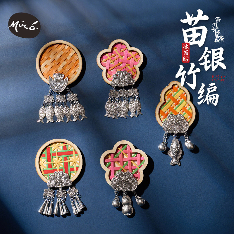 端午节苗银竹编冰箱贴手工diy儿童材料团建暖场活动道具非遗磁贴