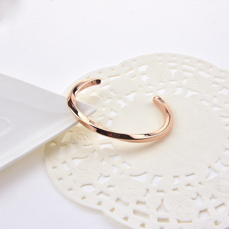 不退色开口手环时尚 钛钢手镯女精致不锈钢手饰镀18k玫瑰金手链