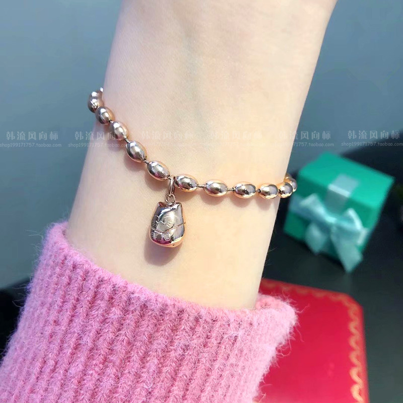 原创设计超萌招财龙猫手链钛钢18K玫瑰金圆珠手镯手饰品女不褪色