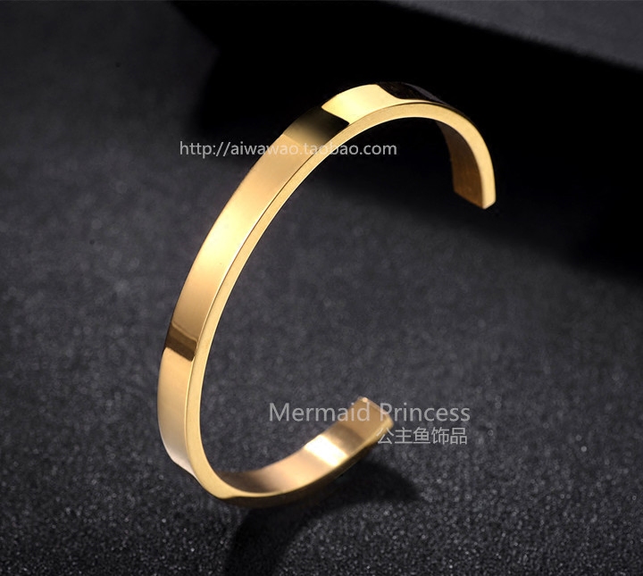 高级感钛钢18K金 素圈开口手镯女情侣彩金玫瑰金镯子男士手环小众