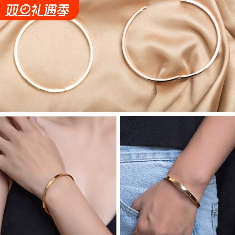 18k玫瑰金钛钢手镯女手饰品网红手镯年轻款冷淡风ins潮2023士环子