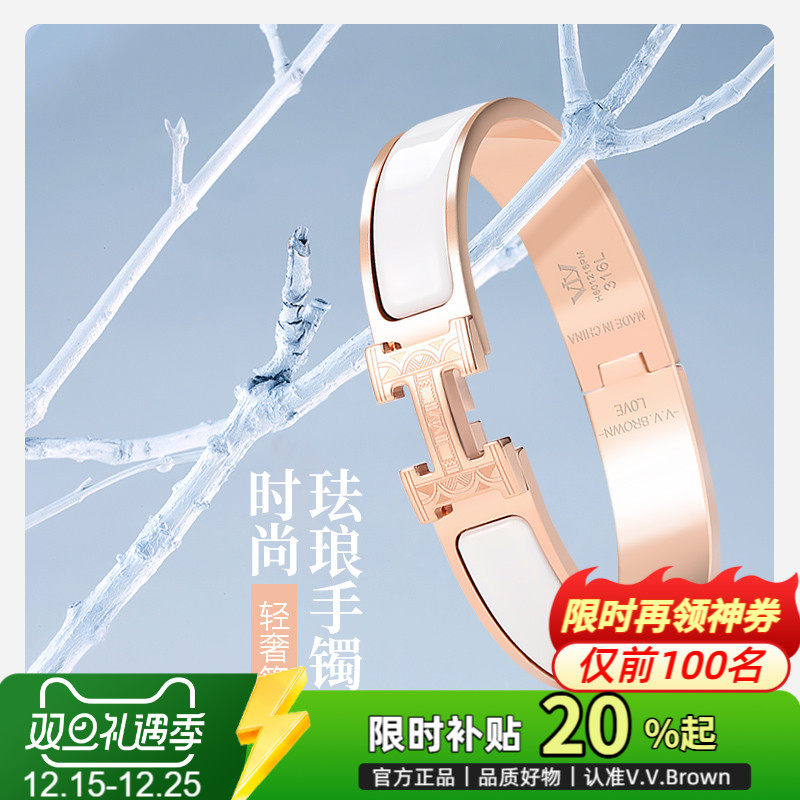 V.V.Brown VTV高档316L钛钢珐琅手镯镀18K玫瑰金H扣正品女手环