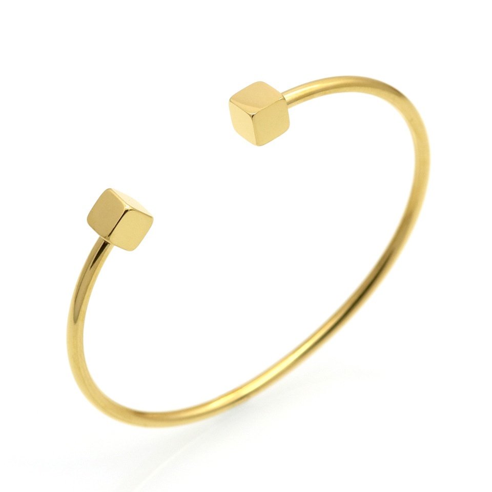 日韩版简约个性黑色方形单钻镶钻开口钛钢镀18K玫瑰金手镯手环女