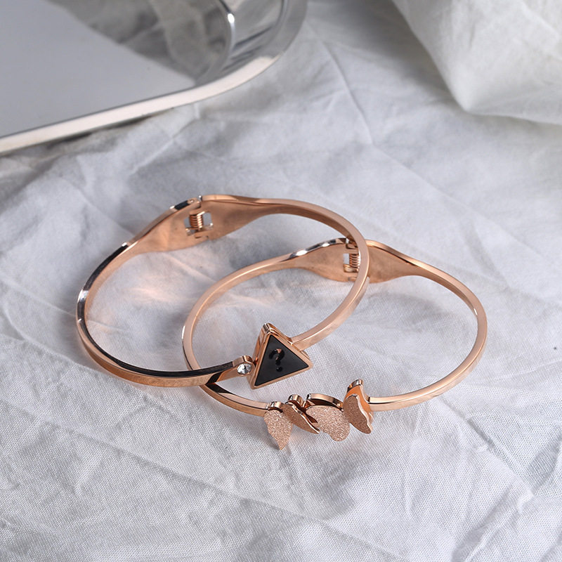 镀18K玫瑰金手镯女小众设计网红钛钢手链韩版简约个性手环小清新